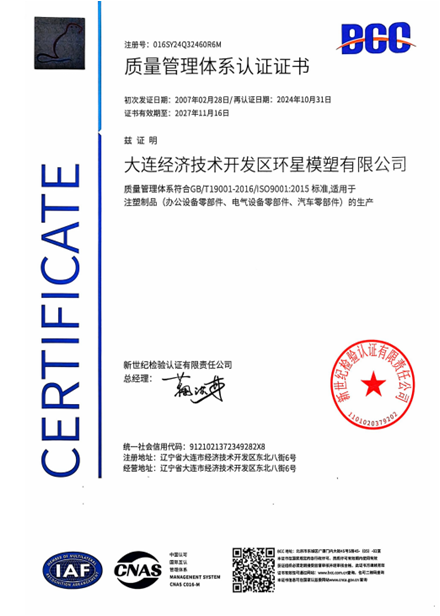 大连经济技术开发区环星模塑有限公司成立于2000年。主要从事注塑模具设计和加工、注塑成型、机械加工,特别对小型精密件、齿轮、蜗杆等传动件的模具设计及注塑加工有一定的优势。公司座落于大连经济技术开发区,占地11000平方米,建筑面积9000平方米。